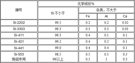 ????金屬硅又稱結晶硅或工業硅。金屬硅是由石英和焦炭在電熱爐內冶煉成的產品,主成分硅元素的含量在98%左右(近年來,含Si99.99%的也包含在金屬硅內),其余雜質為鐵、鋁、鈣等。硅塊主要用于硅粉系列、鋁合金錠冶煉、硅鋼片、鋁合金材料及特種鋼的冶煉等產品。
